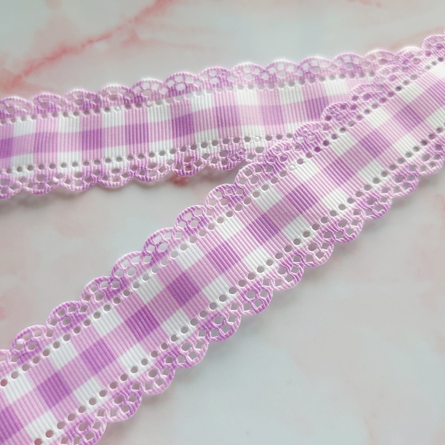チェック柄 くり抜き グログランリボン パープル