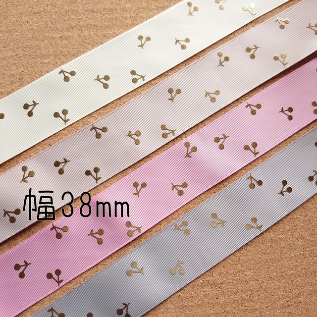 38mm グログランリボン 箔押し さくらんぼ
