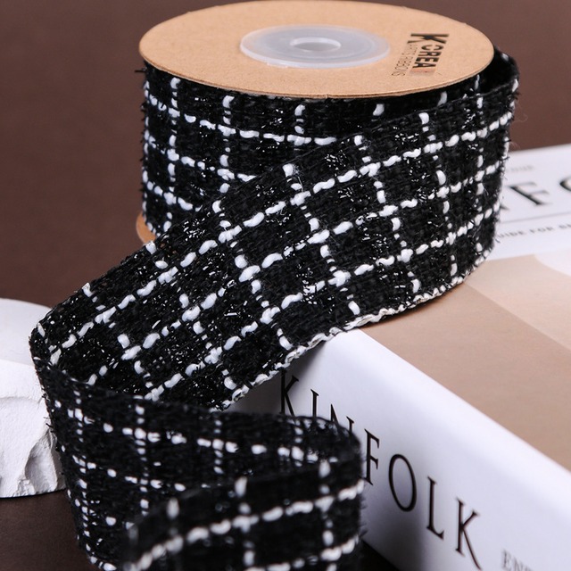 38mm ツイードリボン 秋冬素材 ブラック R101