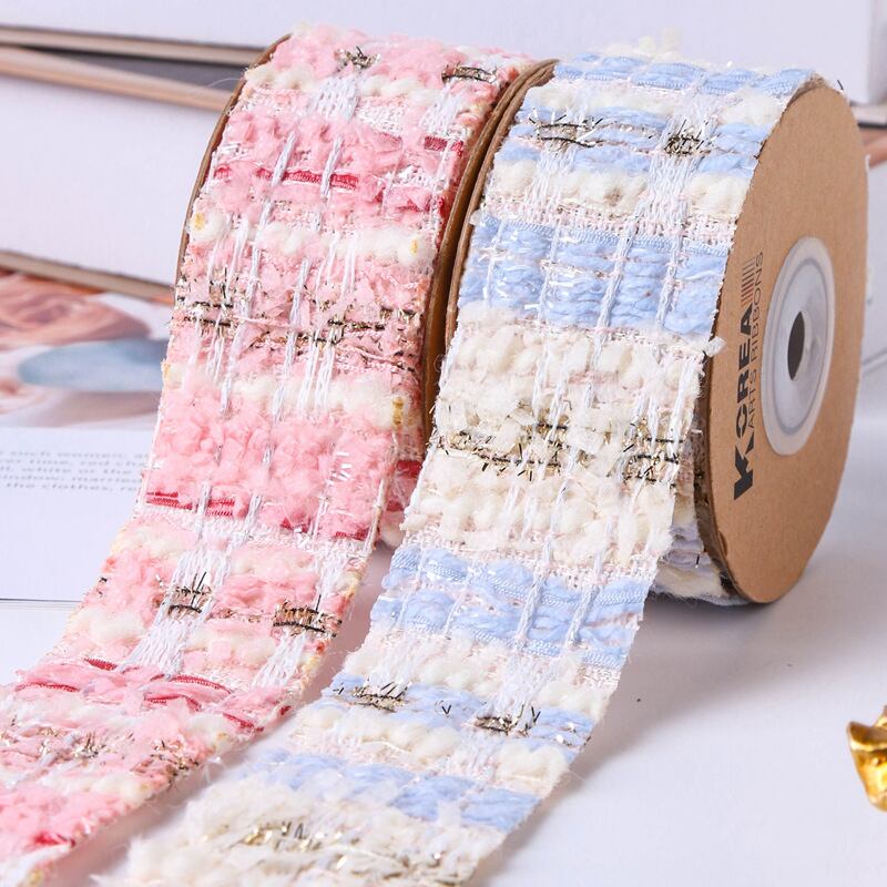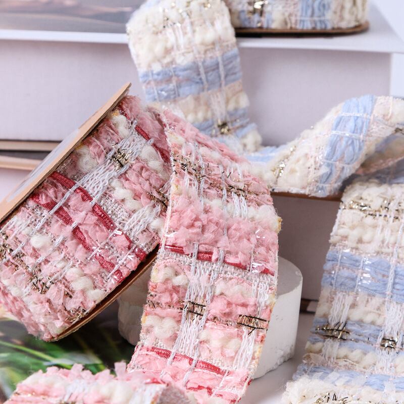 25mm ツイードリボン 秋冬素材 ピンク ブルー