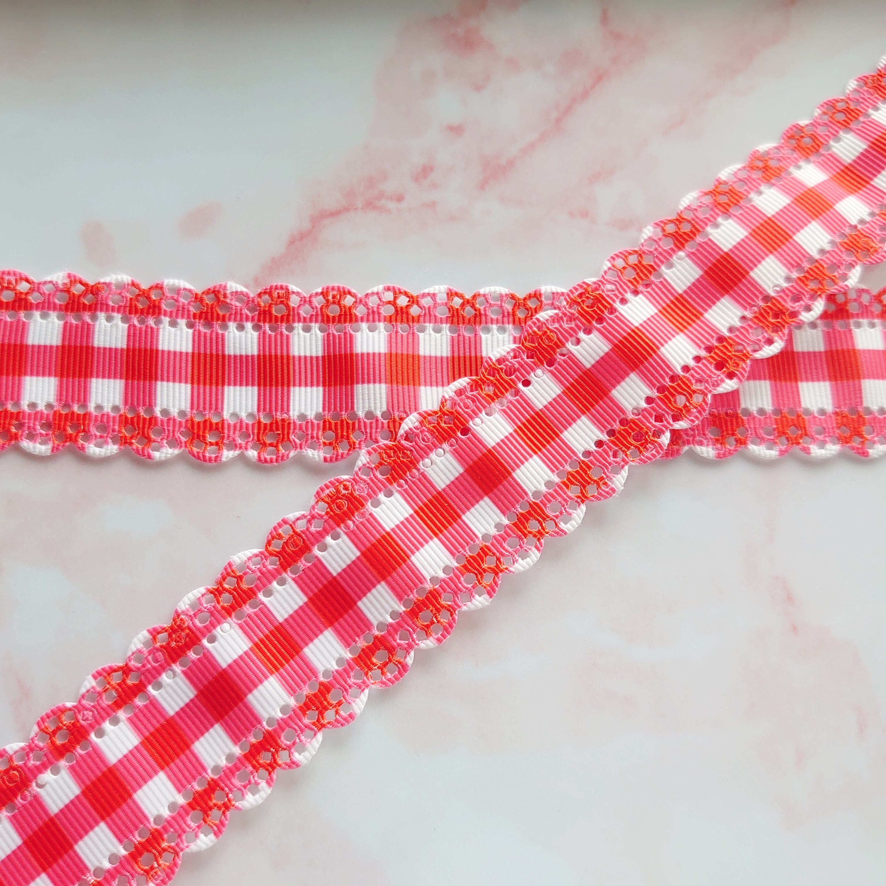 チェック柄 くり抜き グログランリボン レッド
